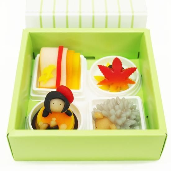 生八ッ橋で、さまざまなモチーフを象りました。中には、こしあんまたは白餡が入っています。